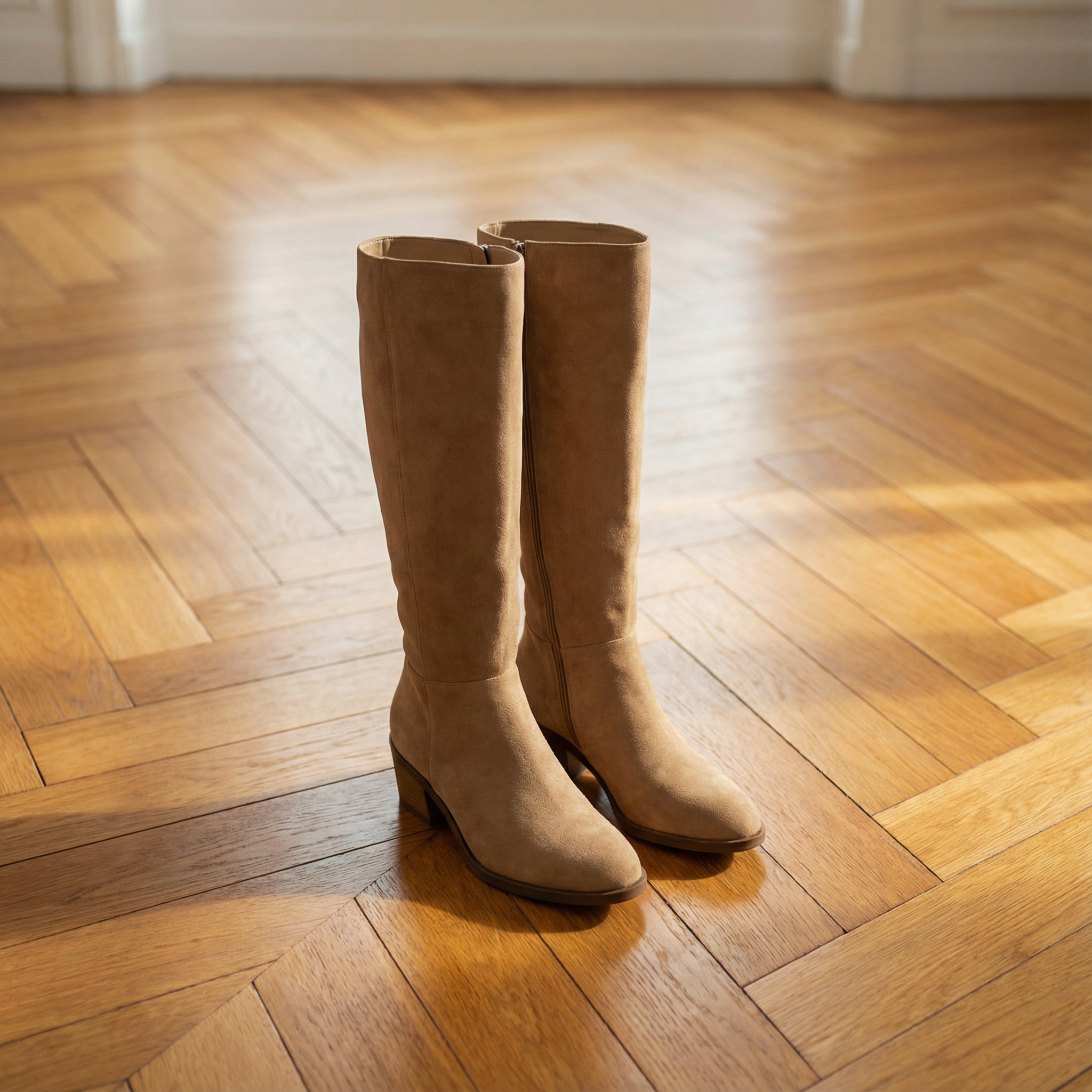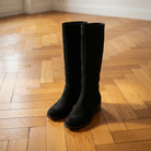 Wide Calf Boots β Knee High Taupe Suede With Low Block Heel & Cushioned Footbed