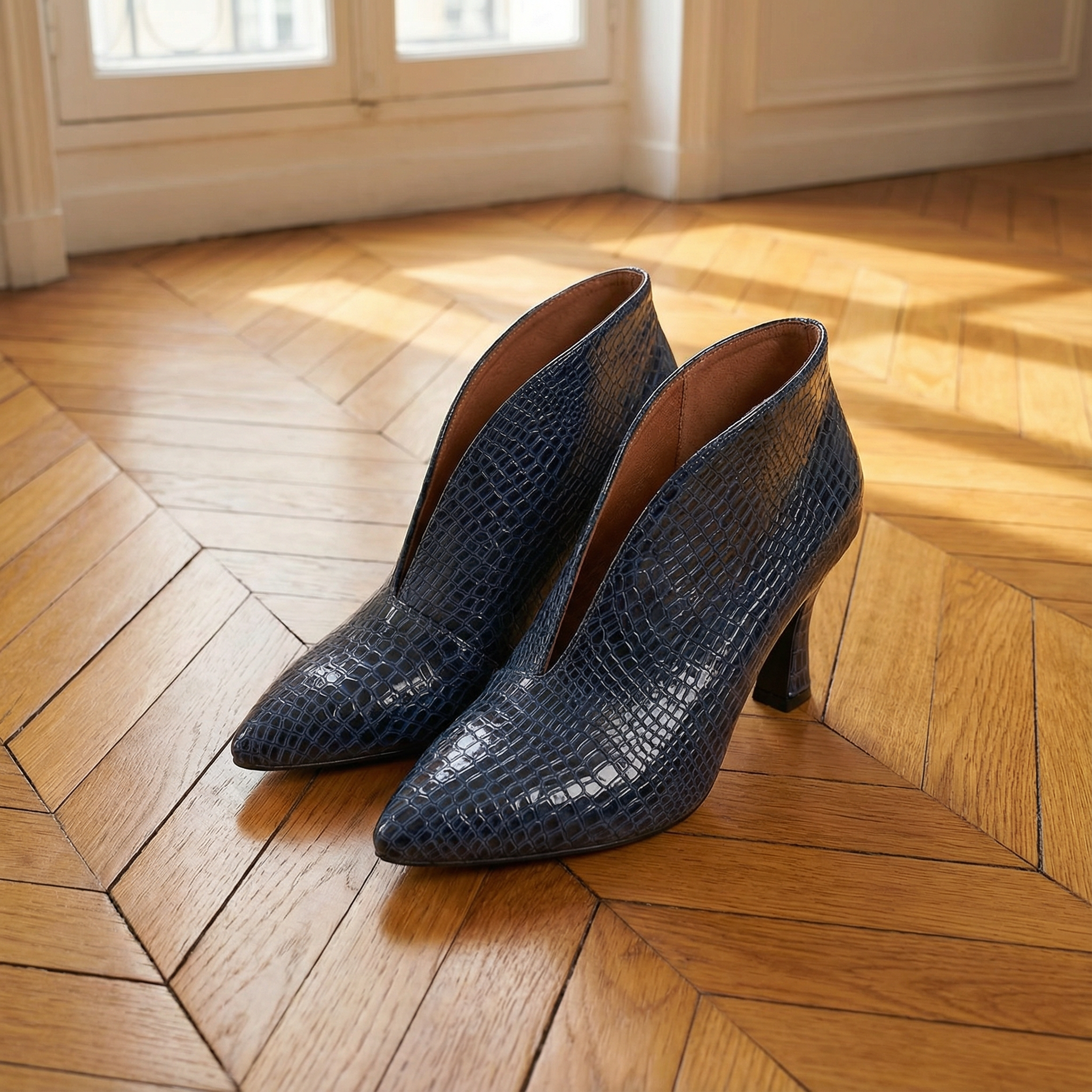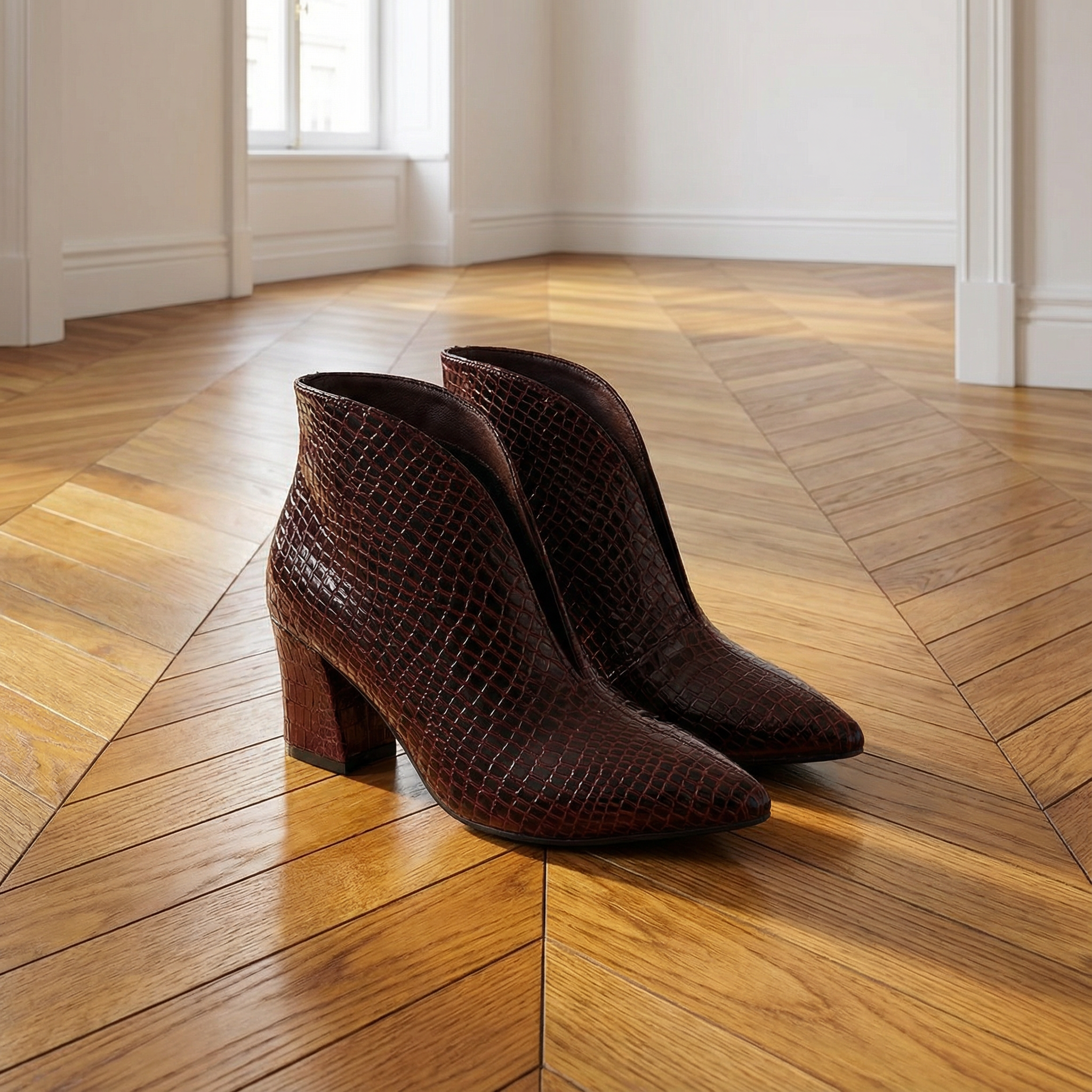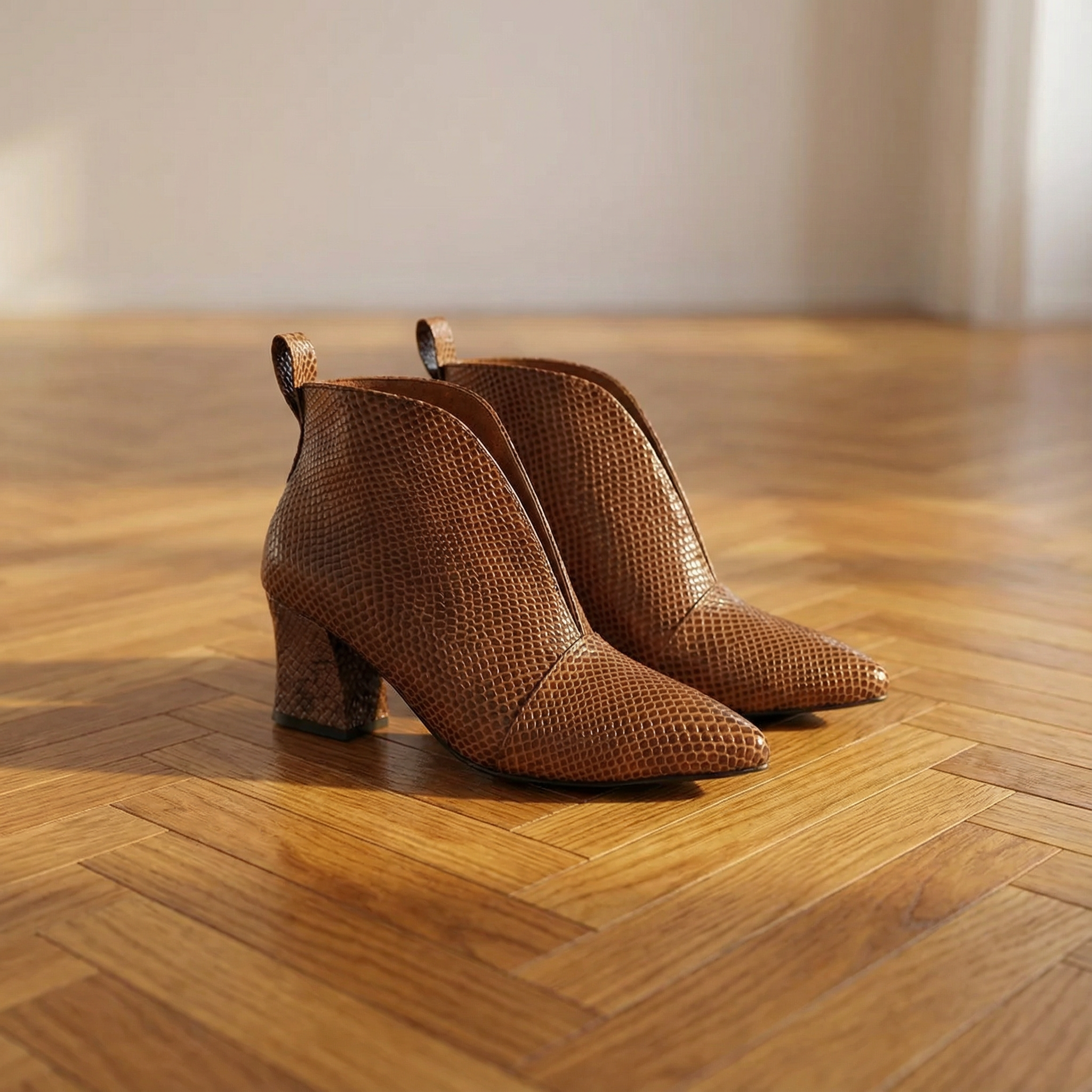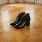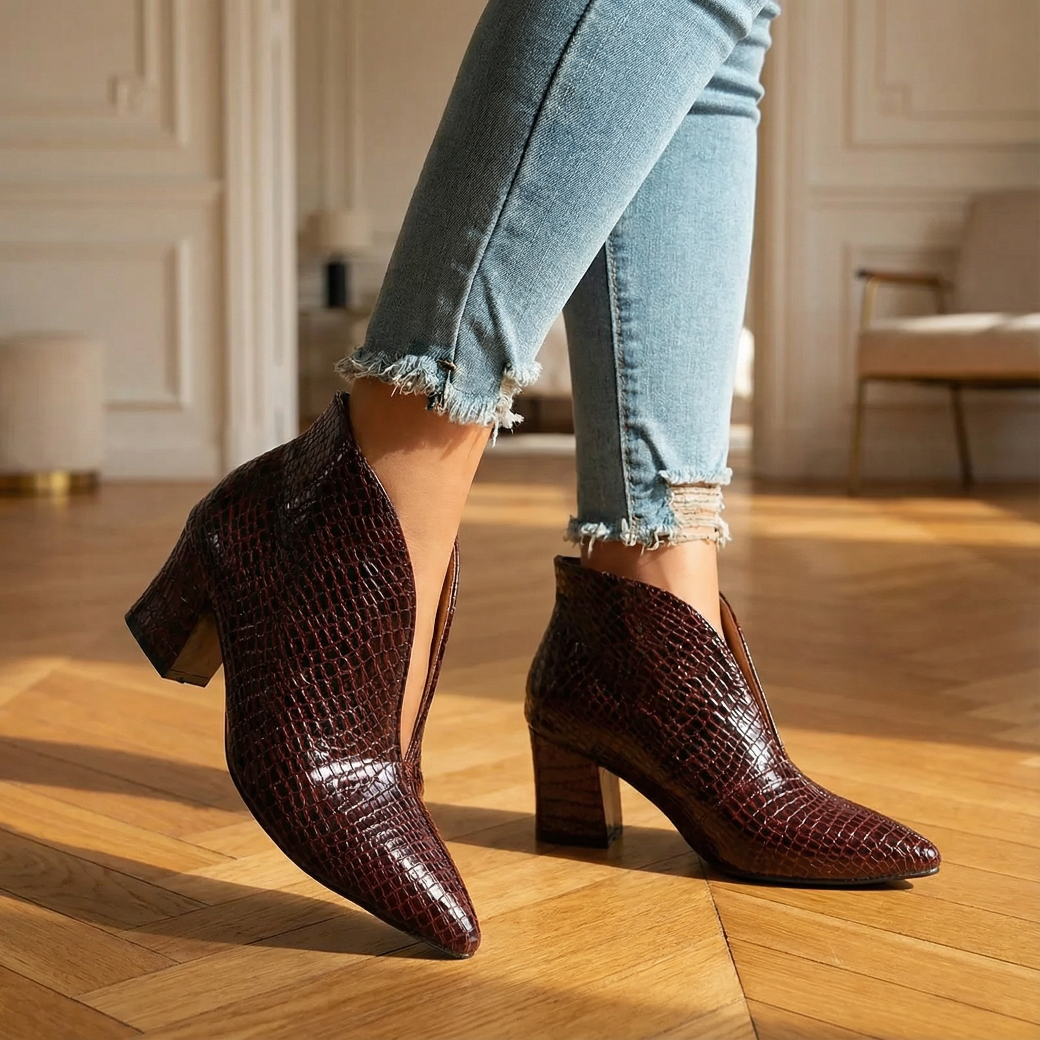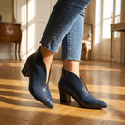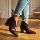 Textured Ankle Boots β Women's Curved Cut Mid Block Heel Stylish Booties