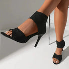 Elevate your style with Women's High-Heeled Sandals - Stiletto Heel - Open Toe - Stretch Knit Anklet. These chic, slip-on sandals feature a sleek stiletto heel, open-toe design, and a comfortable stretch knit ankle cuff for a secure and stylish fit. Perfect for formal or semi-formal occasions.