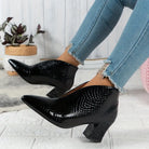 These women's textured ankle boots bring a sleek, modern edge to any outfit. The curved cut design creates a flattering silhouette, while the mid block heel ensures comfort with added height. A versatile choice for day or night looks.