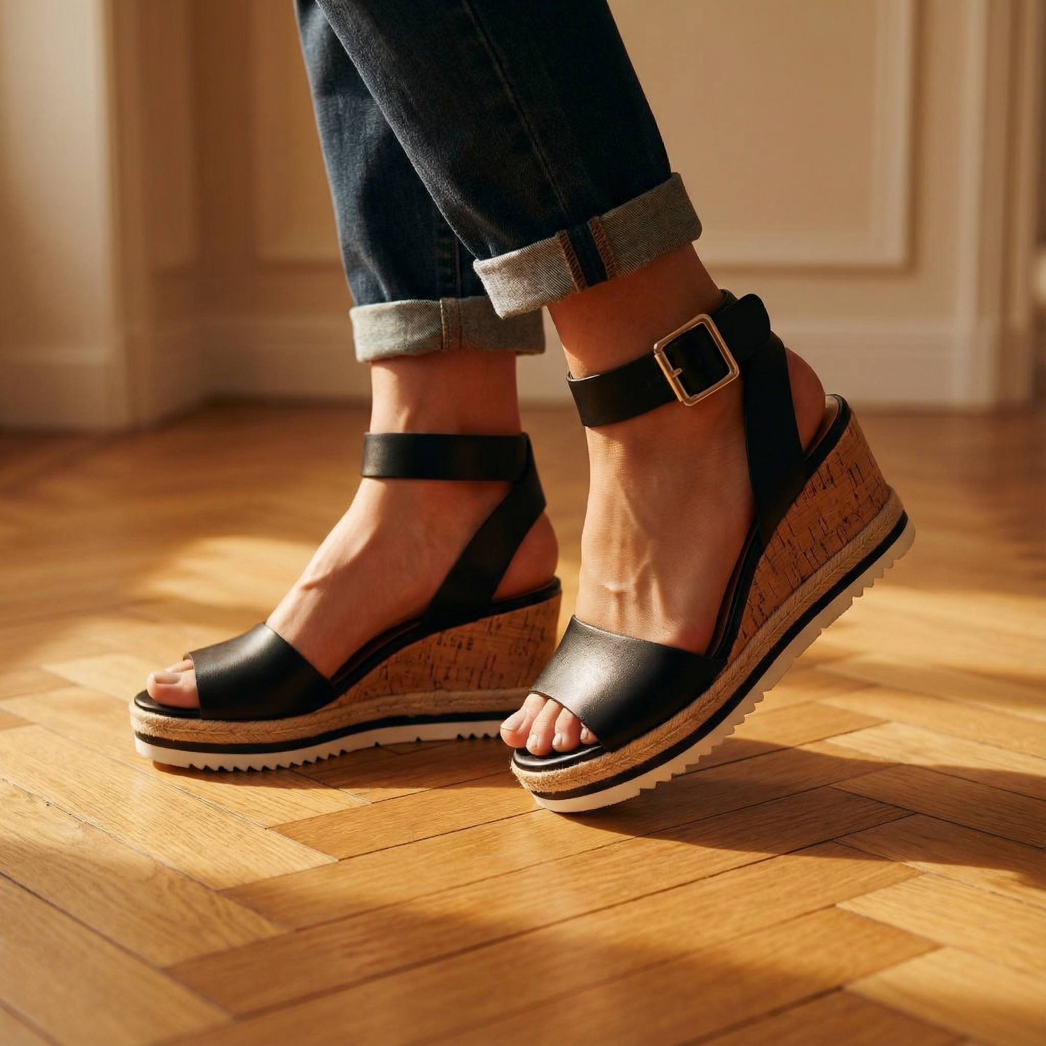 Wedge Sandals β Comfortable Women's Cork Wedge Shoes With Adjustable Ankle Strap