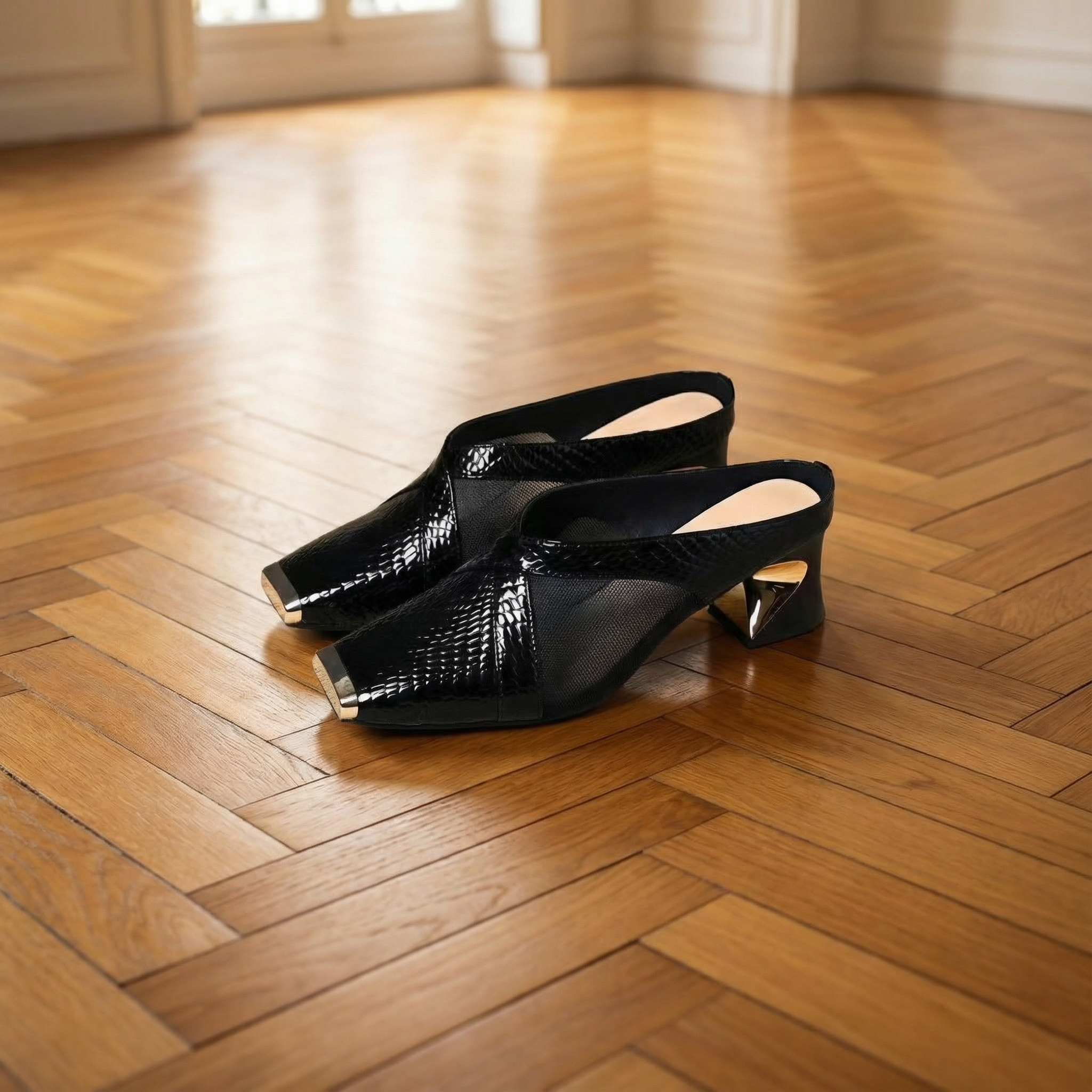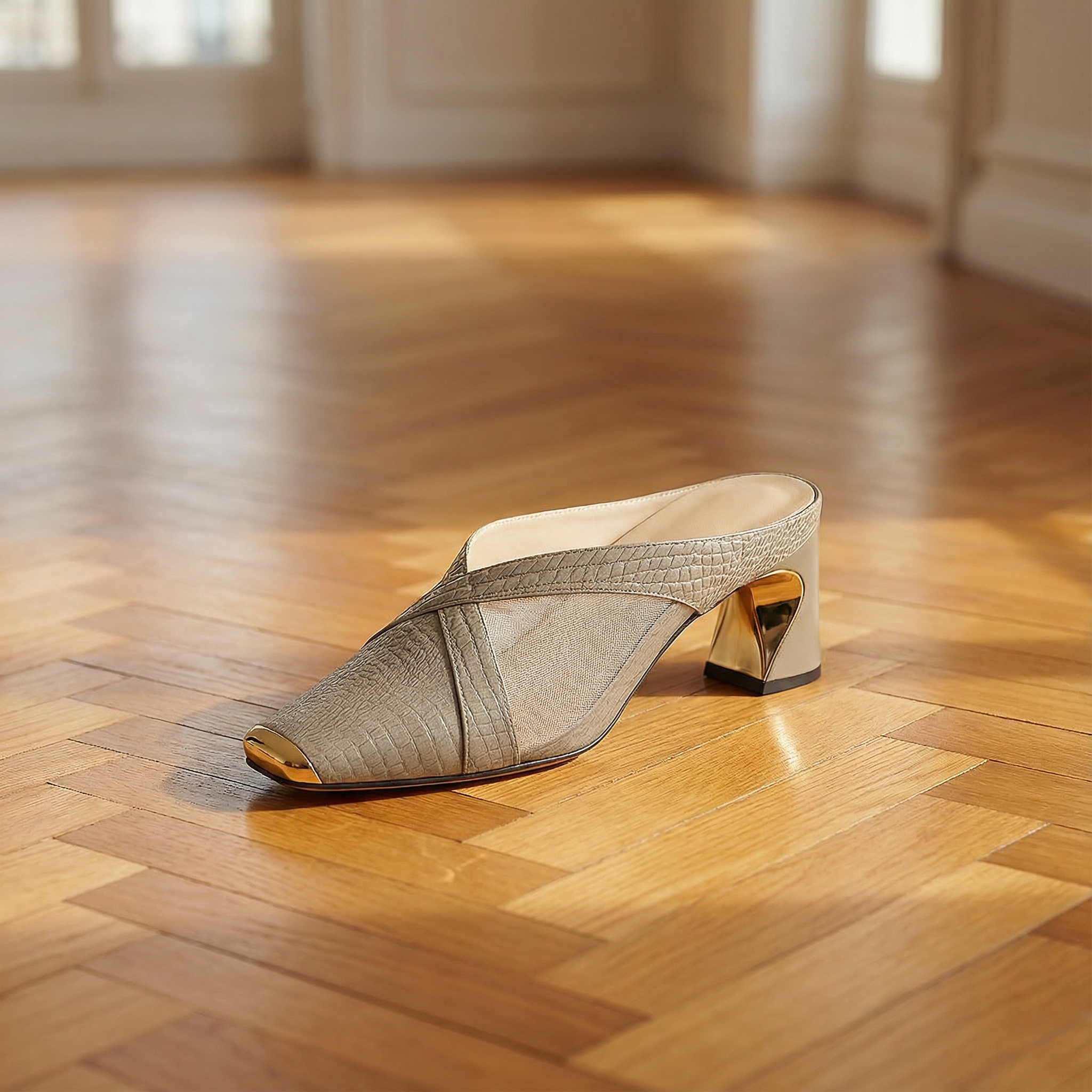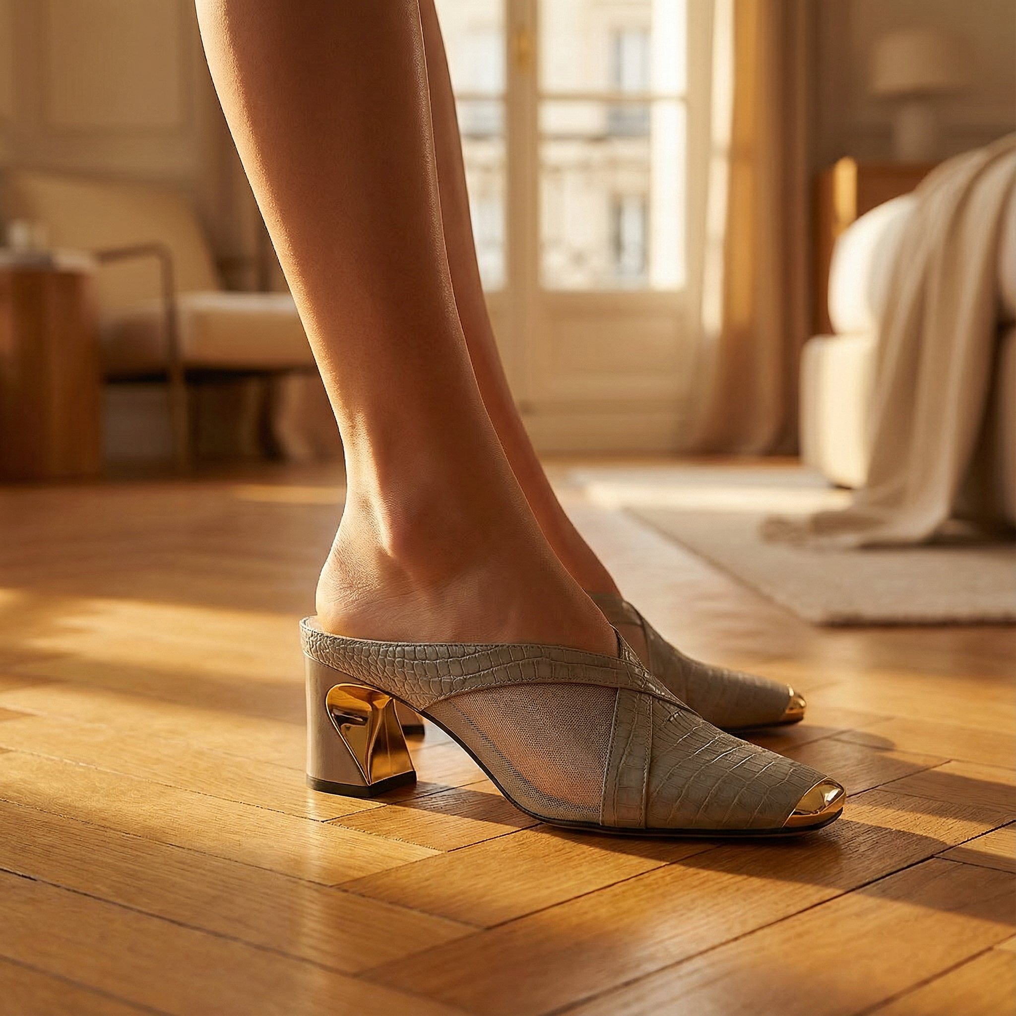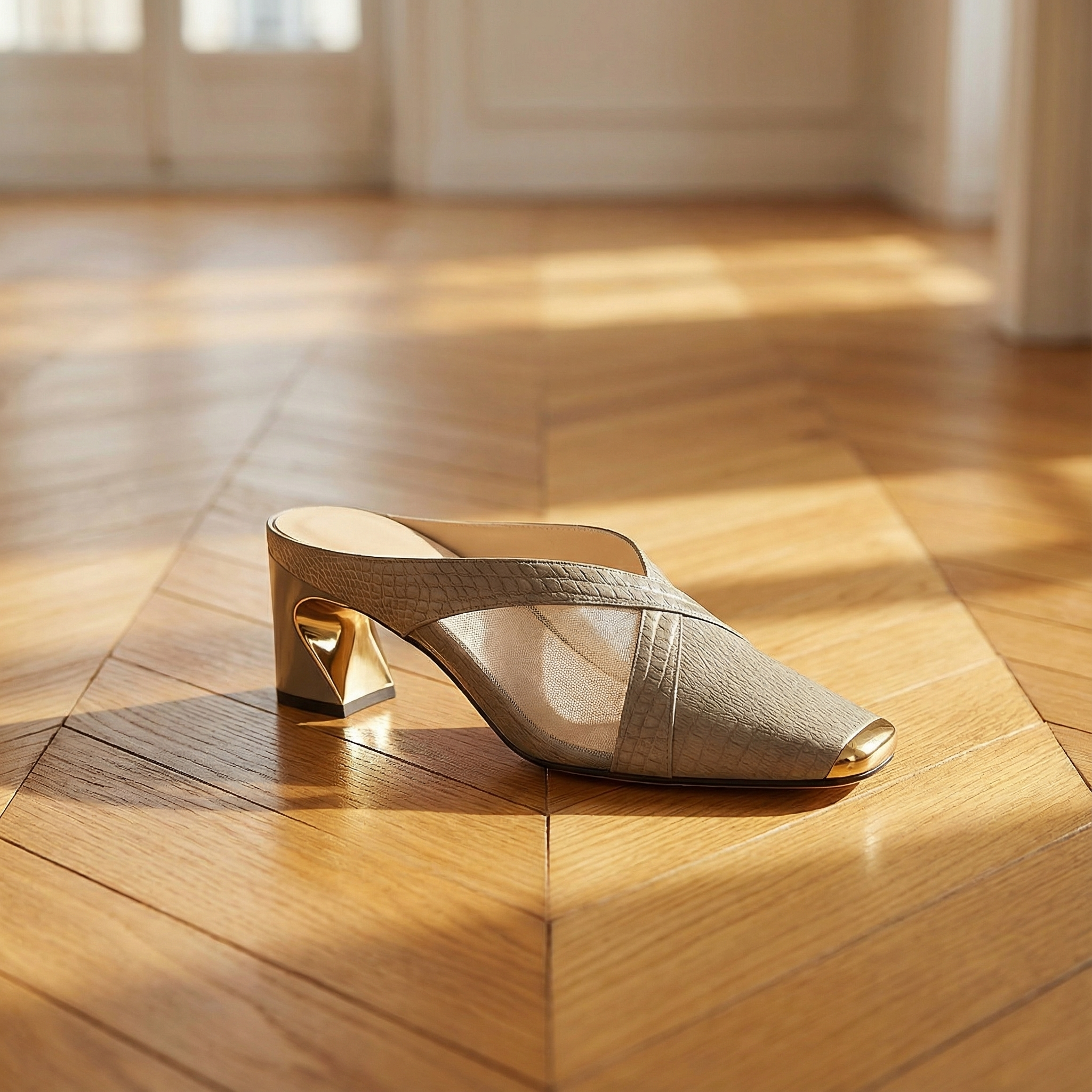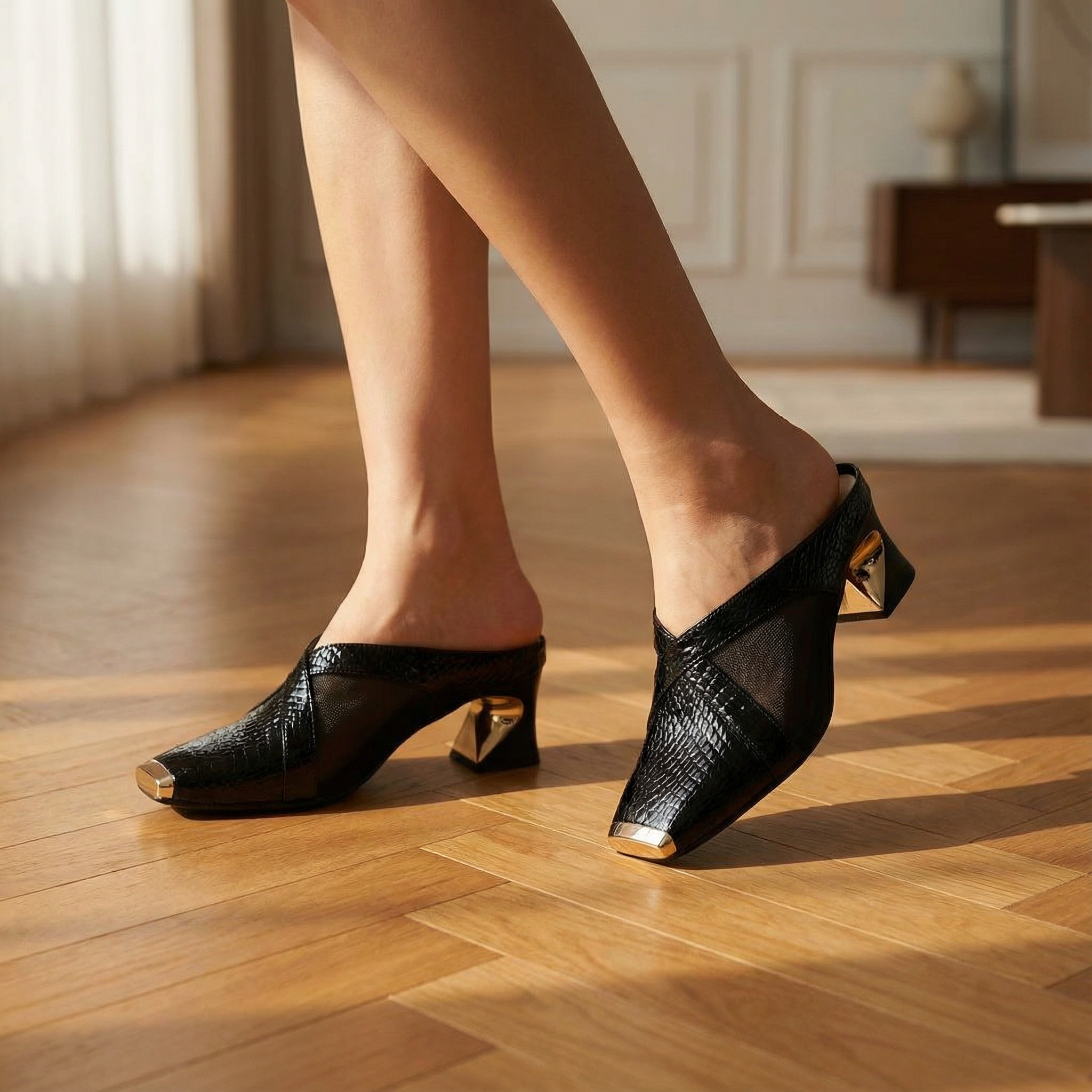 Heeled Mules β Sculptural Heels With Square Toe & Gold Hardware Accent