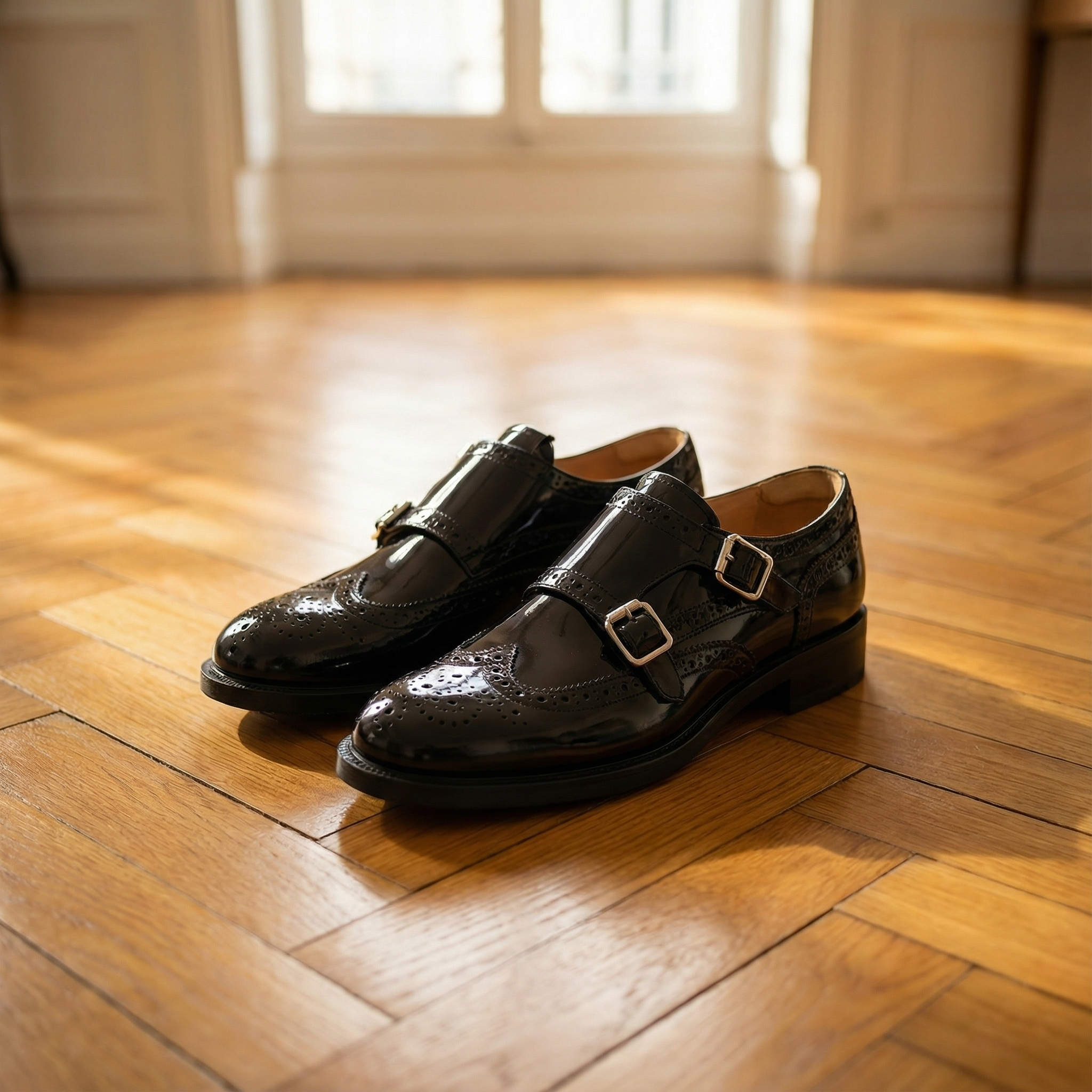 Monk Strap Shoes β Double Monk Strap Brogue Platform Heel With Silver Buckles