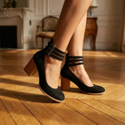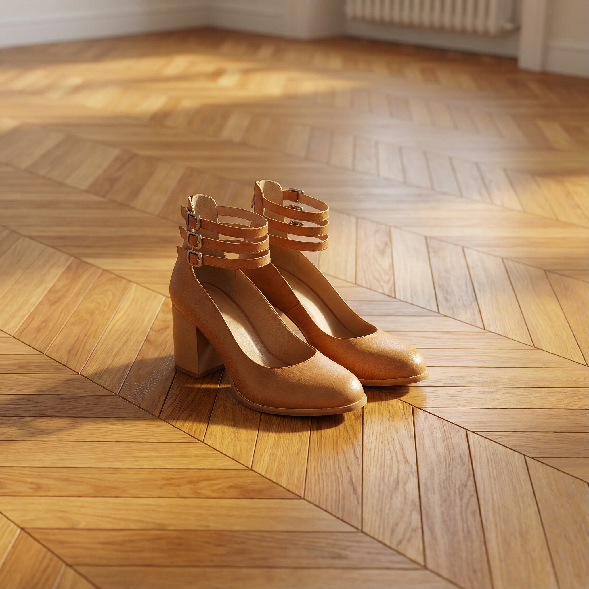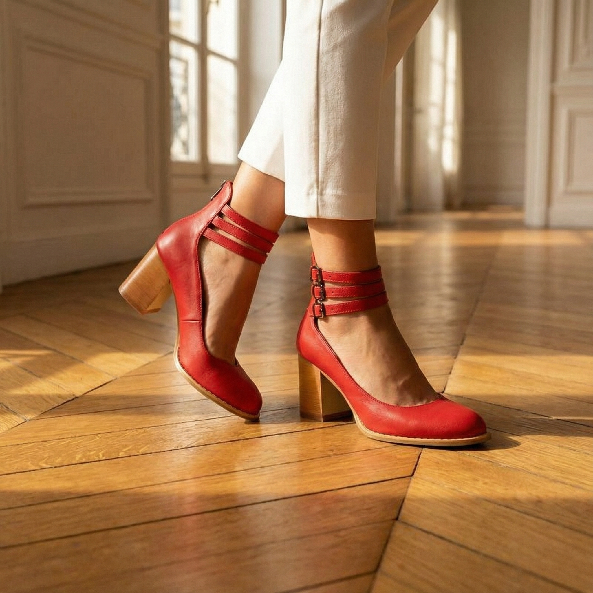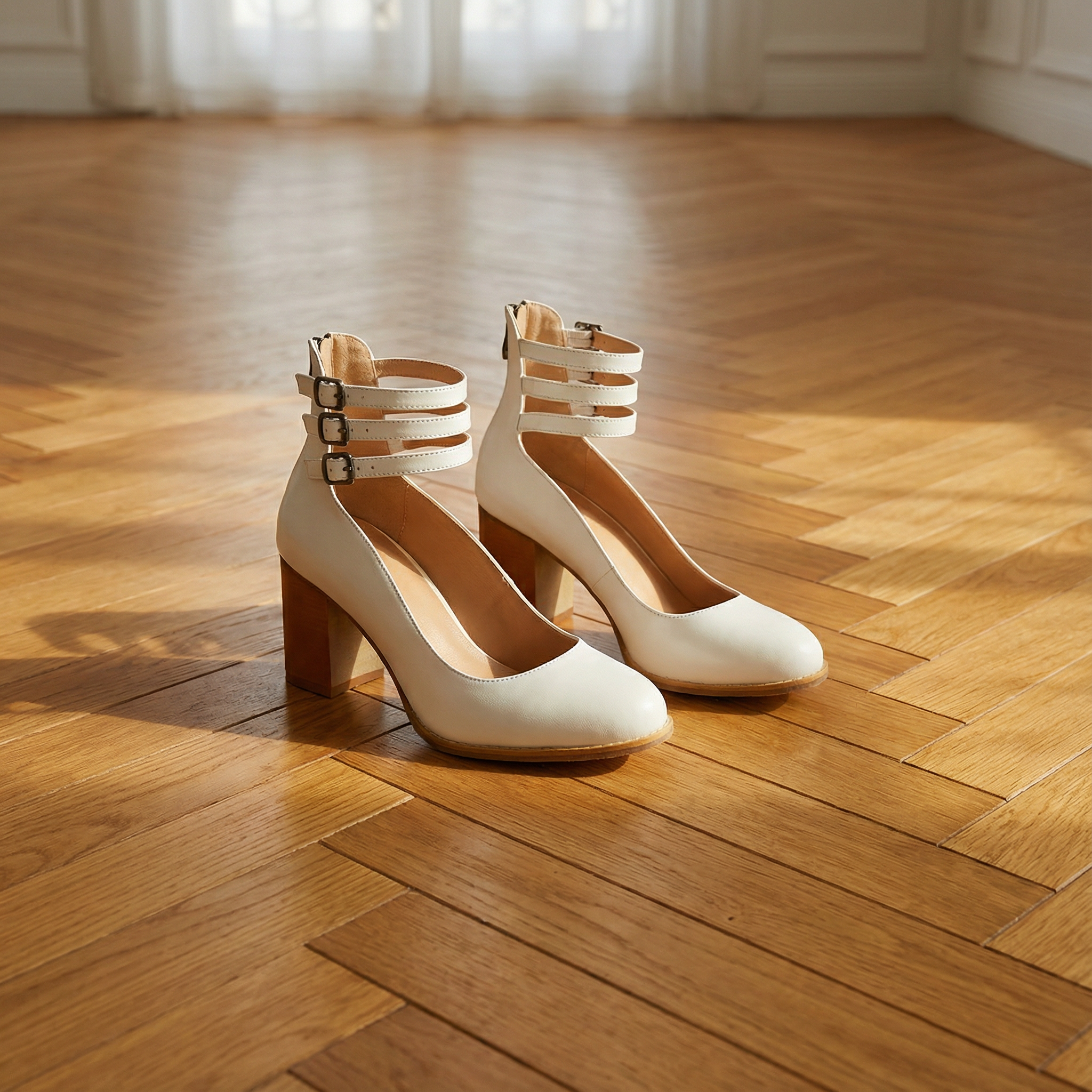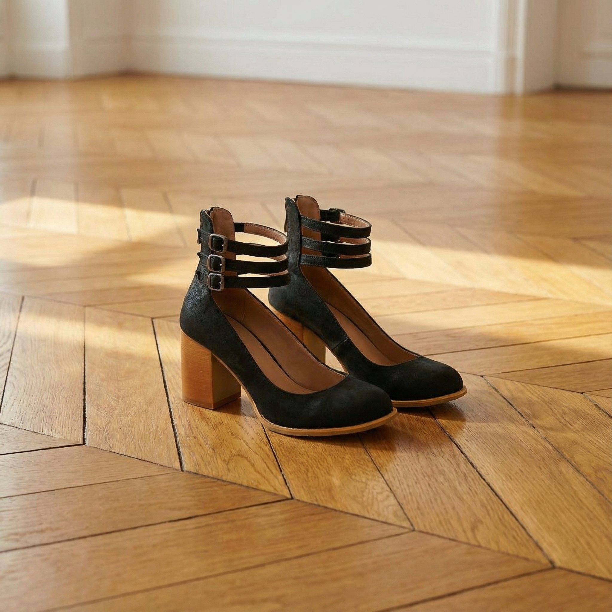 Triple Buckle Heels – Chunky Wooden Block Heel Shoes With Ankle Straps