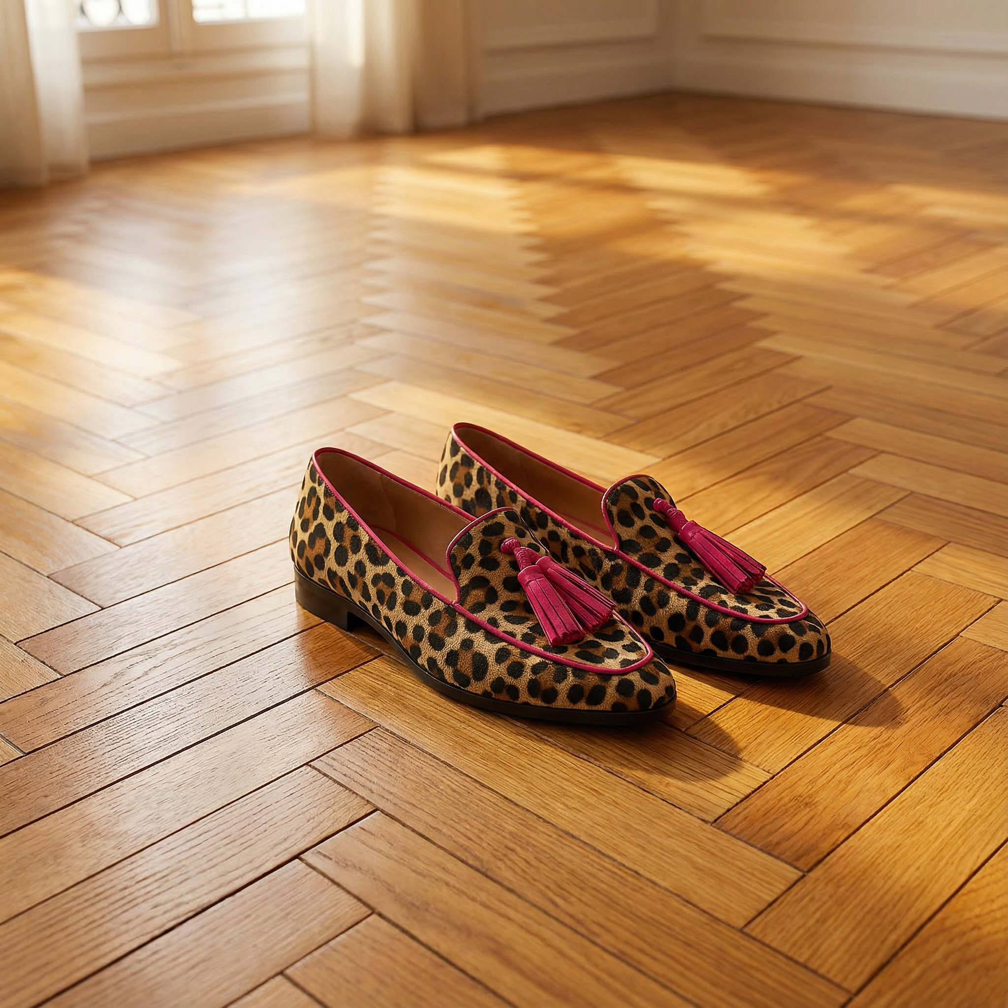 Tassel Loafers β Bold Patterned Women Loafers With Contrast Trim & Rounded Toe