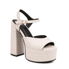 Designed with an Italian inspired woven pattern this platform heel pairs bold structure with soft support. A cushioned footbed, genuine leather lining, and ankle-hugging buckle strap bring all-day comfort to its sculptural, sky-high silhouette.