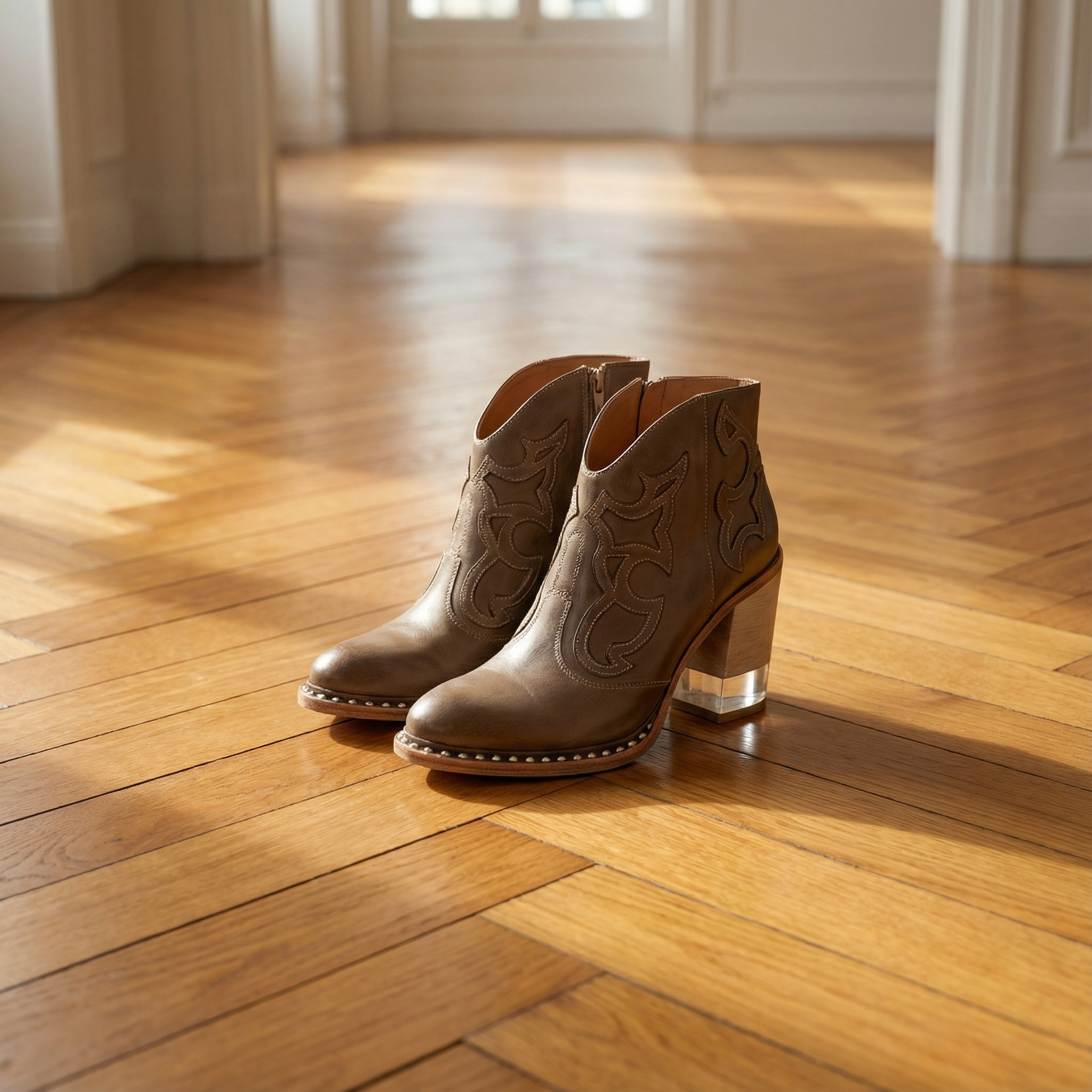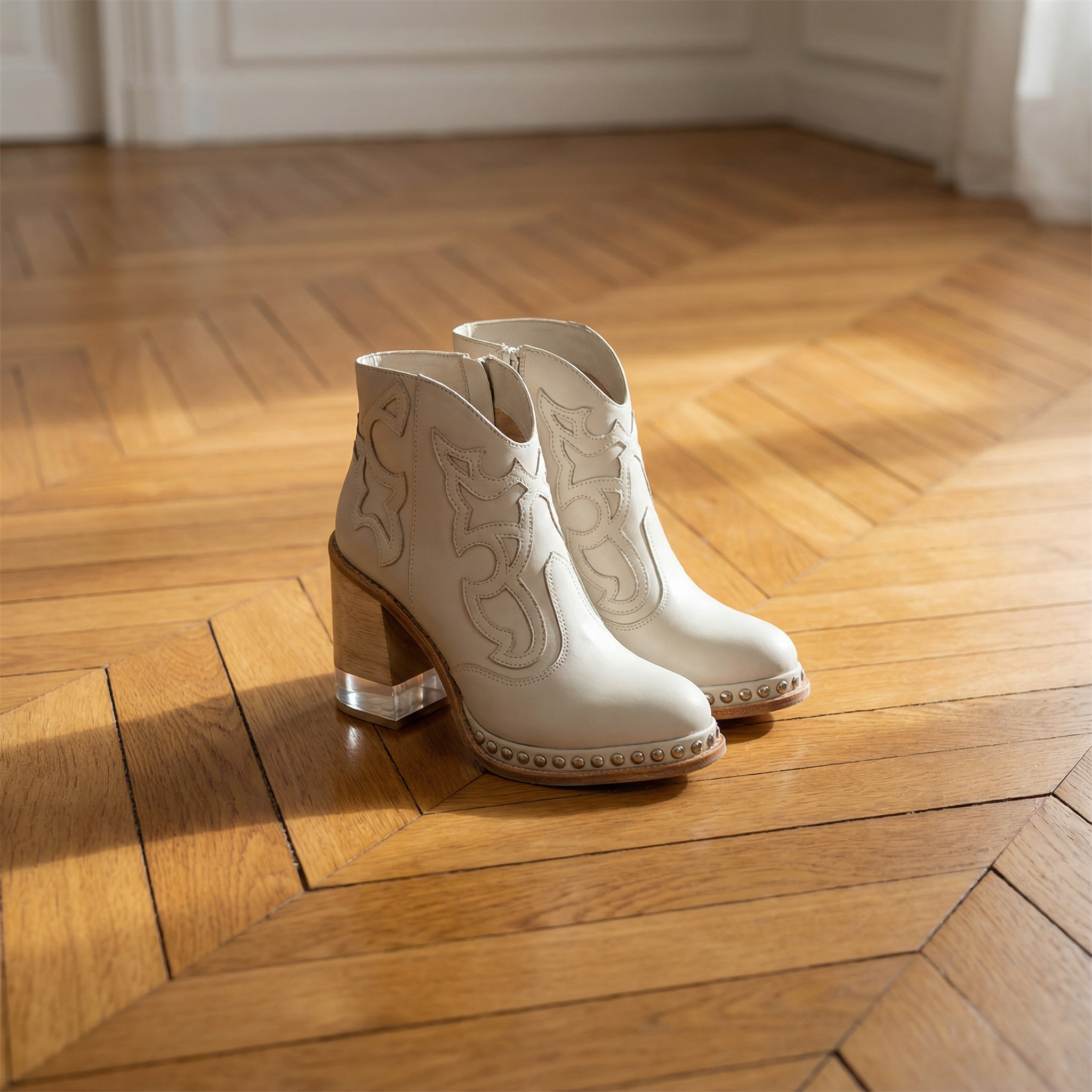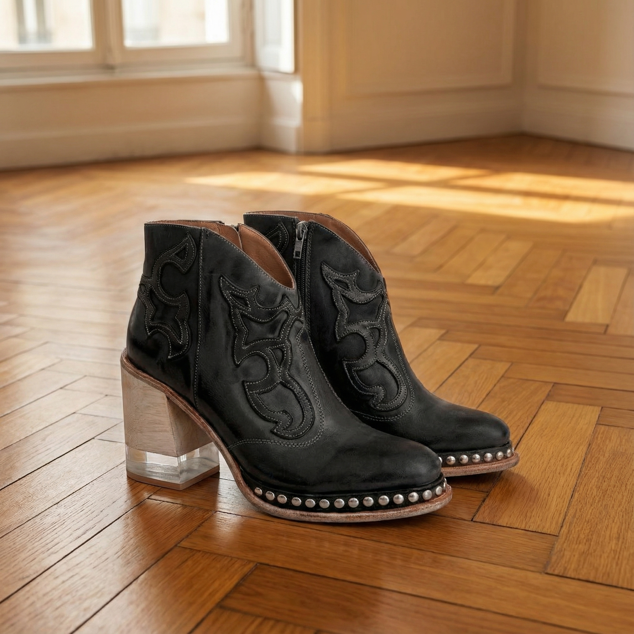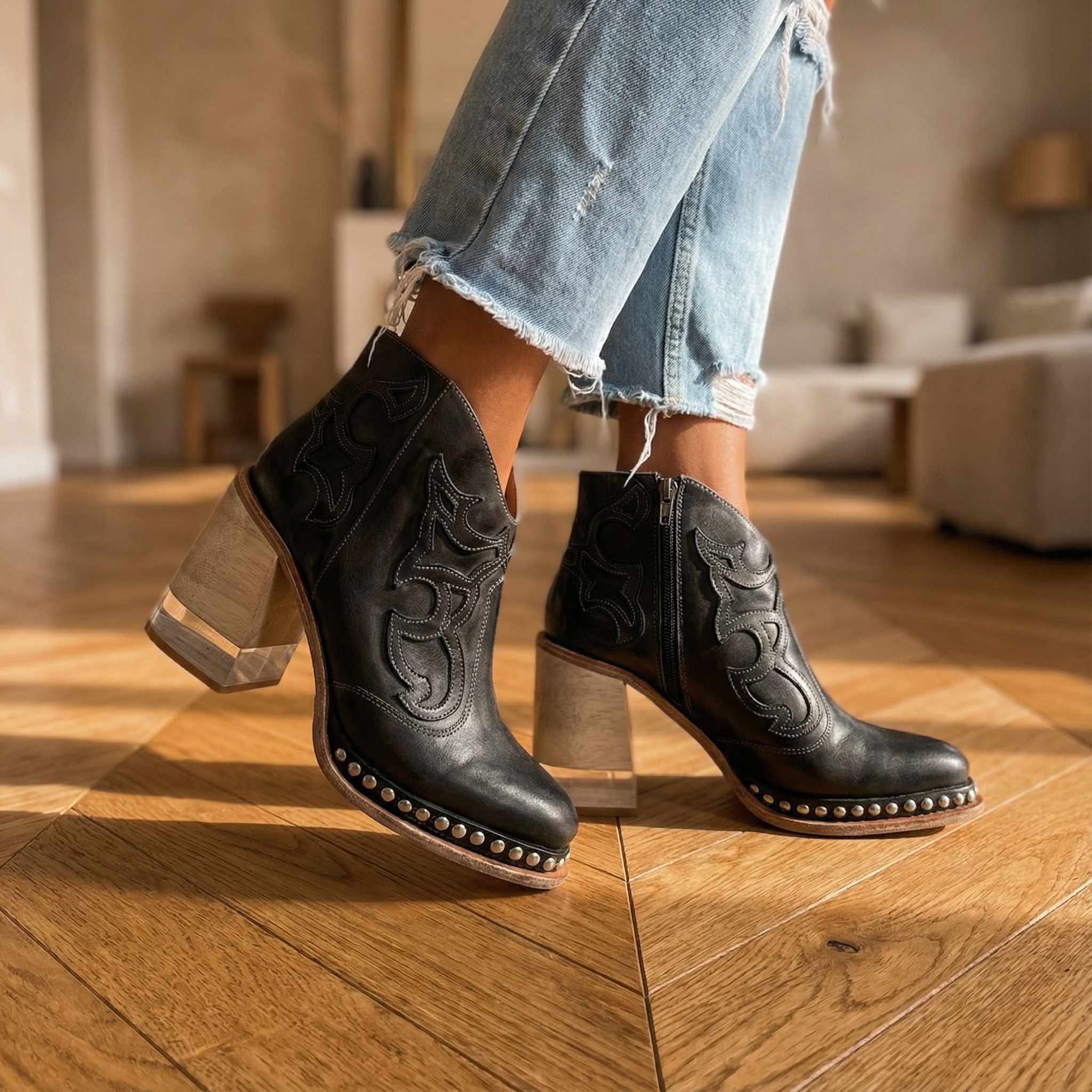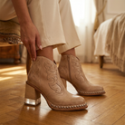 Bella Western Boots β Women's Cowboy Boots with Chunky Heel & Studded Trim