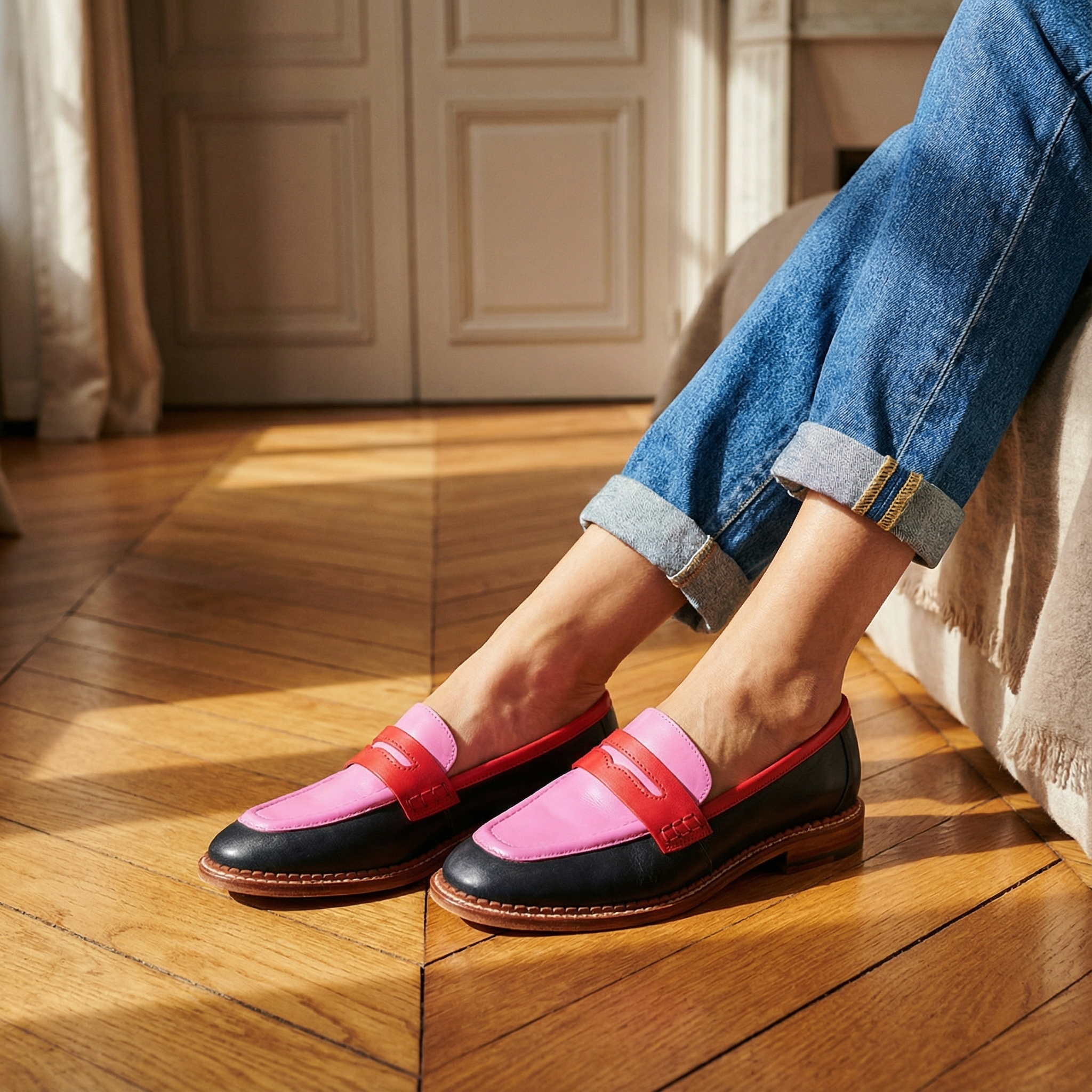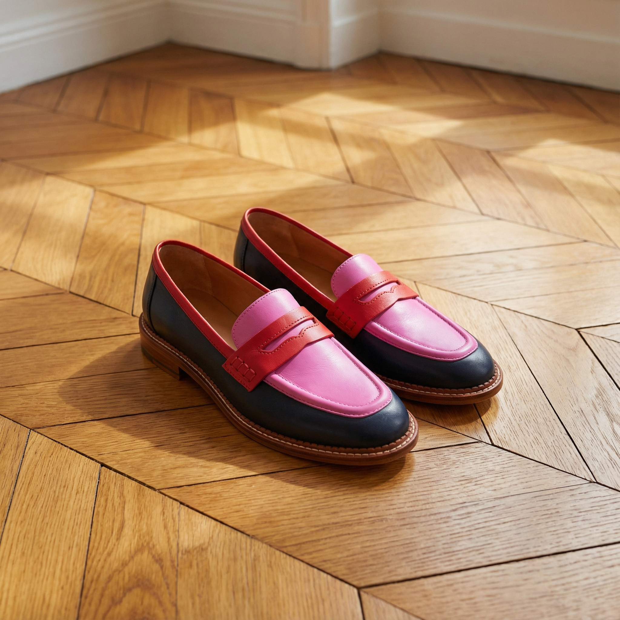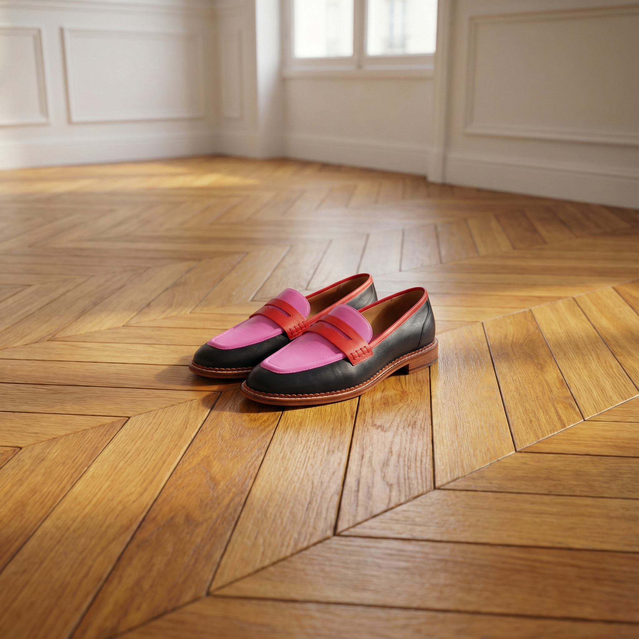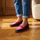 Black & Pink Loafers – Medium Heel Pointed Toe Casual Elegant Footwear