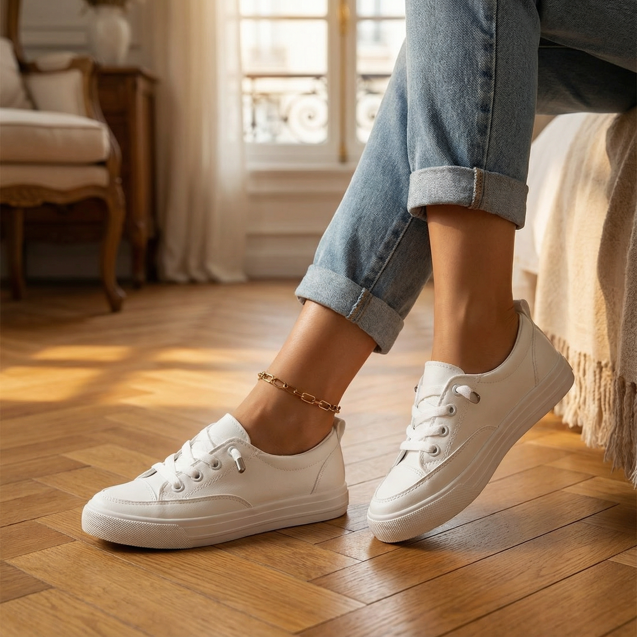 Women's lace-up sneakers with canvas upper and white rubber sole. Features round toe, lace closure, cushioned insole, and rubber outsole. Suitable for casual wear, everyday outfits, or all-season wear.