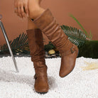 The Danica boots offer a sleek design that blends practicality with everyday wear. Featuring a knee-high silhouette, they are detailed with a side zipper for easy closure and a decorative strap with buckle for added style. The flat sole ensures comfortable support, making them versatile for both casual and dressed looks during the season.