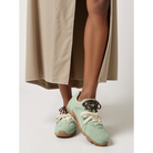 Crafted from genuine calfskin suede these retro inspired double laced sneakers combine vintage charm with iconic style. They are sure to elevate any shoe collection.