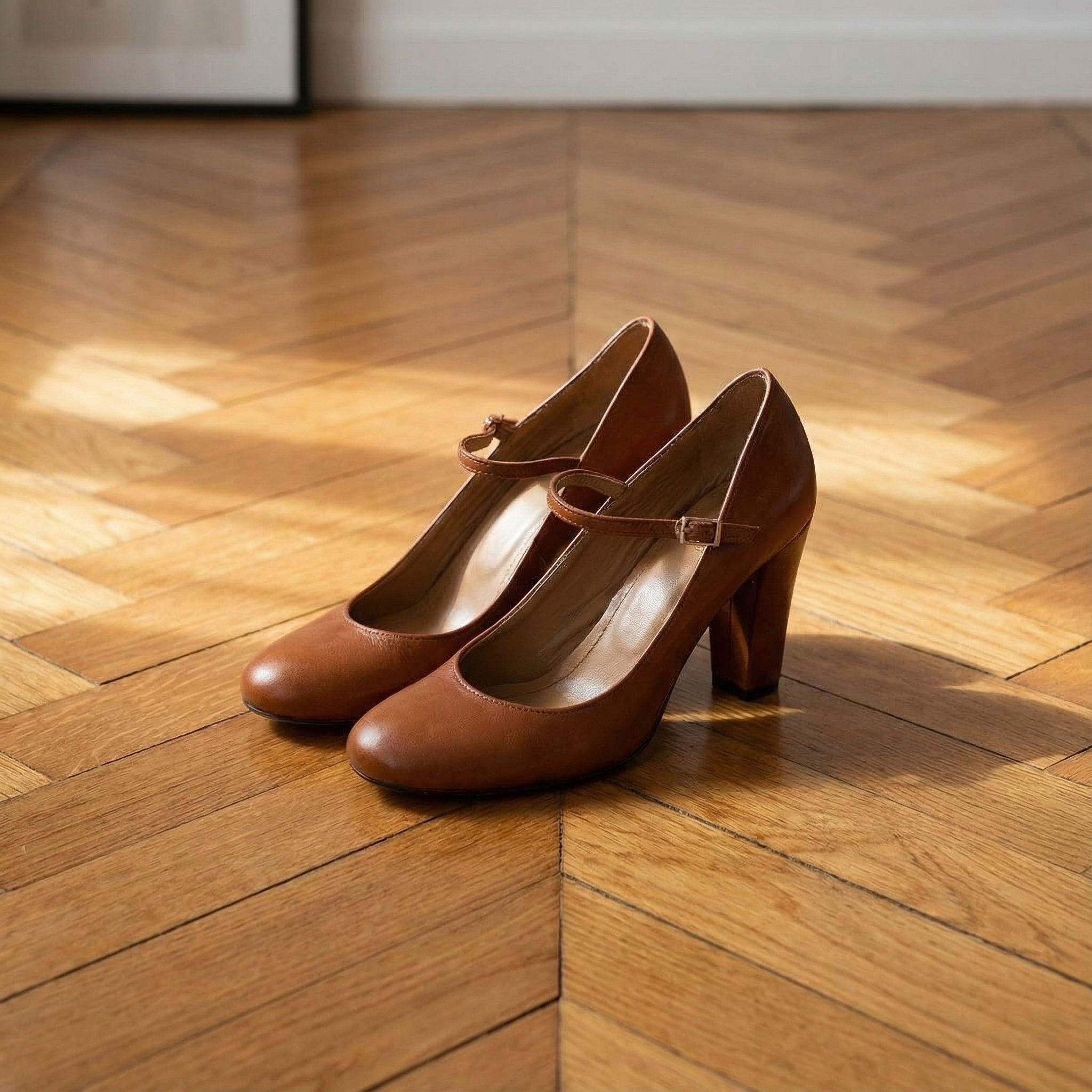 Everyday heels with straps are a pair of elegant heels, designed for everyday use. These shoes feature a casual design with straps and buckles, adding an extra touch of charm. Their brown color and wide heels make them versatile, perfect for both daytime and semi-formal occasions.