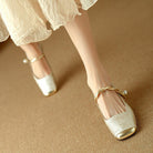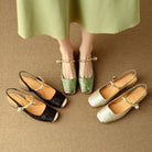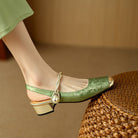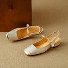 A perfectly squared-off toe with a signature premium sculpt these vintage-inspired mules, elevated by a pearl-accented strap and a wrapped block heel.