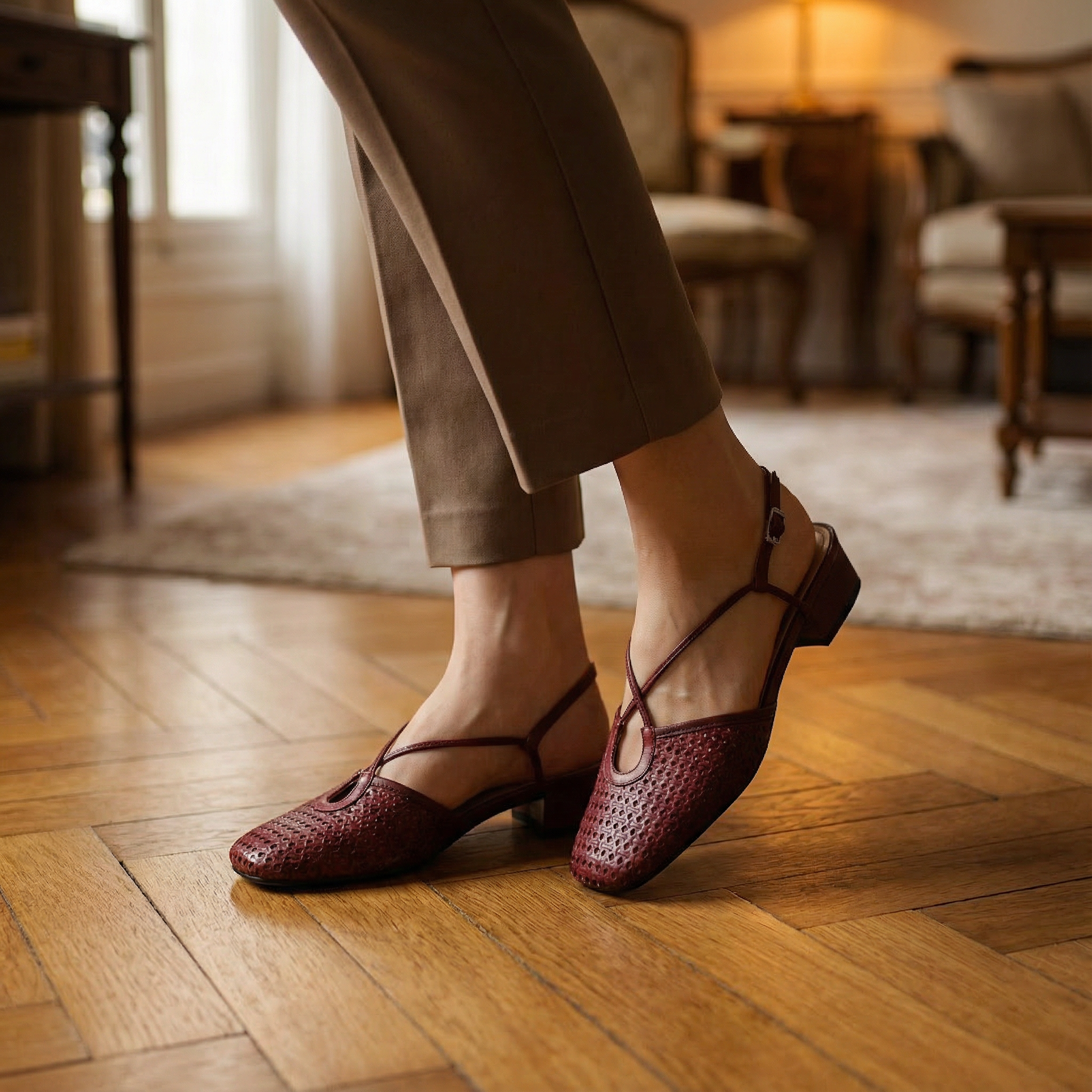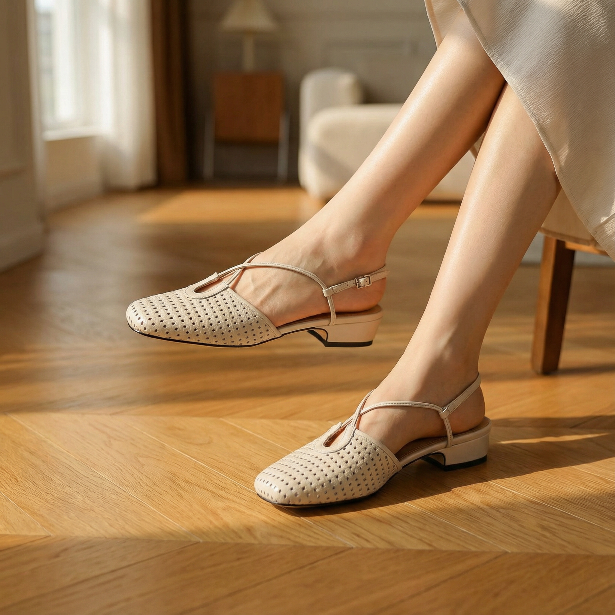 Genuine Slingback Shoes β Women's Cross Strap Low Heel Footwear Essentials