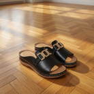 Gold Buckle Black Slide Sandals – Cushioned Footbed Comfort