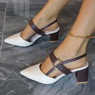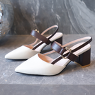 Designed with clean lines and contrast leather textures, the Marais Buckle Heels feature a pointed toe, structured block heel, and polished gold hardware. A refined essential, crafted for everyday ease with elevated structure.