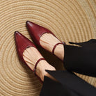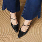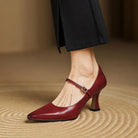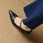 This fashioned, flirty pointed-toe pump creates a flattering silhouette with a delicate buckle strap and a tapered block heel, perfect for business meetings and special occasions.
