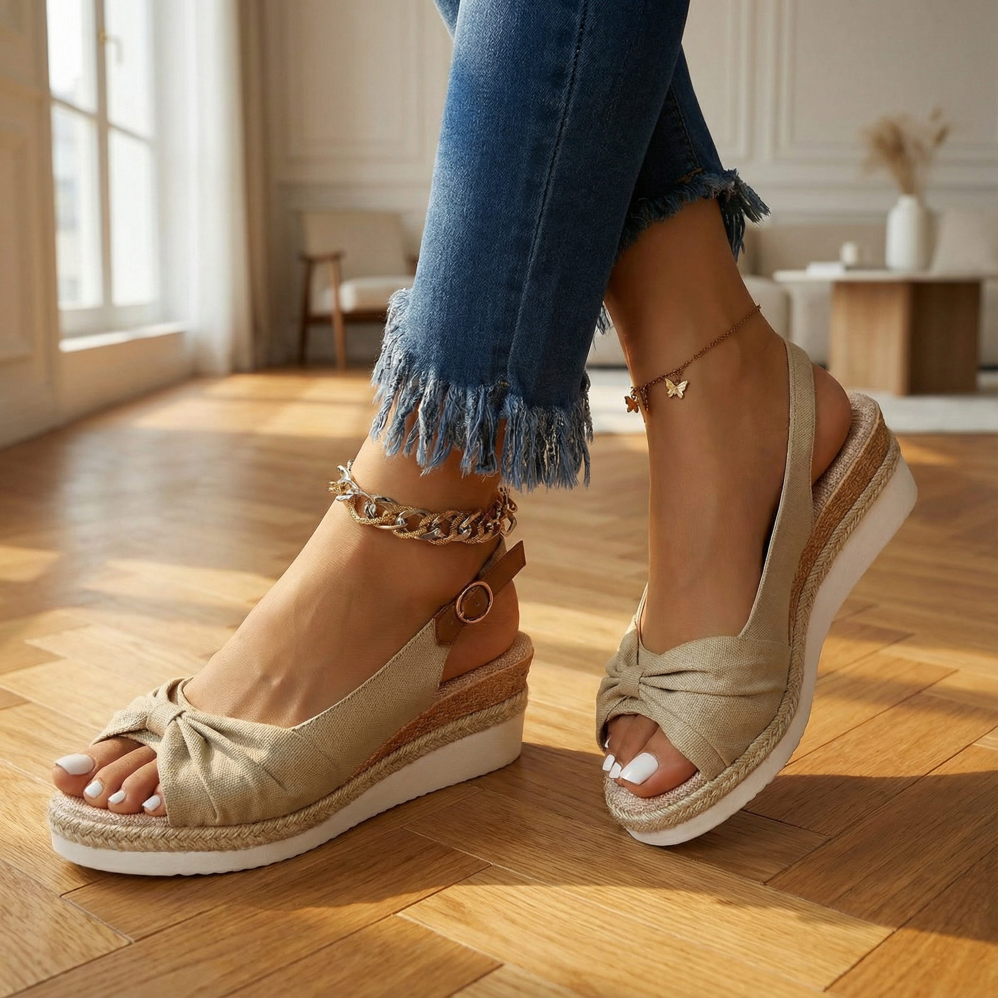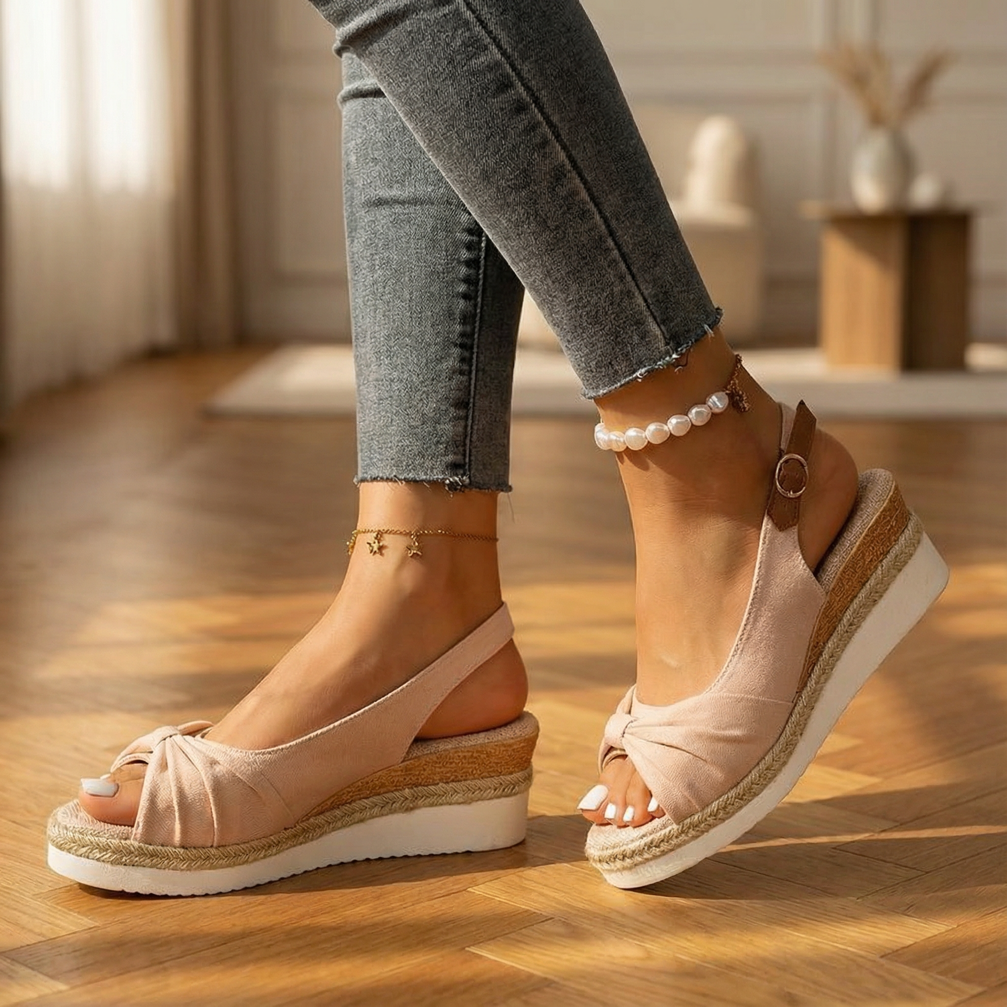 Spring Sandals – Women's Adjustable Strap Sandals With Cushioned Footbed Comfort