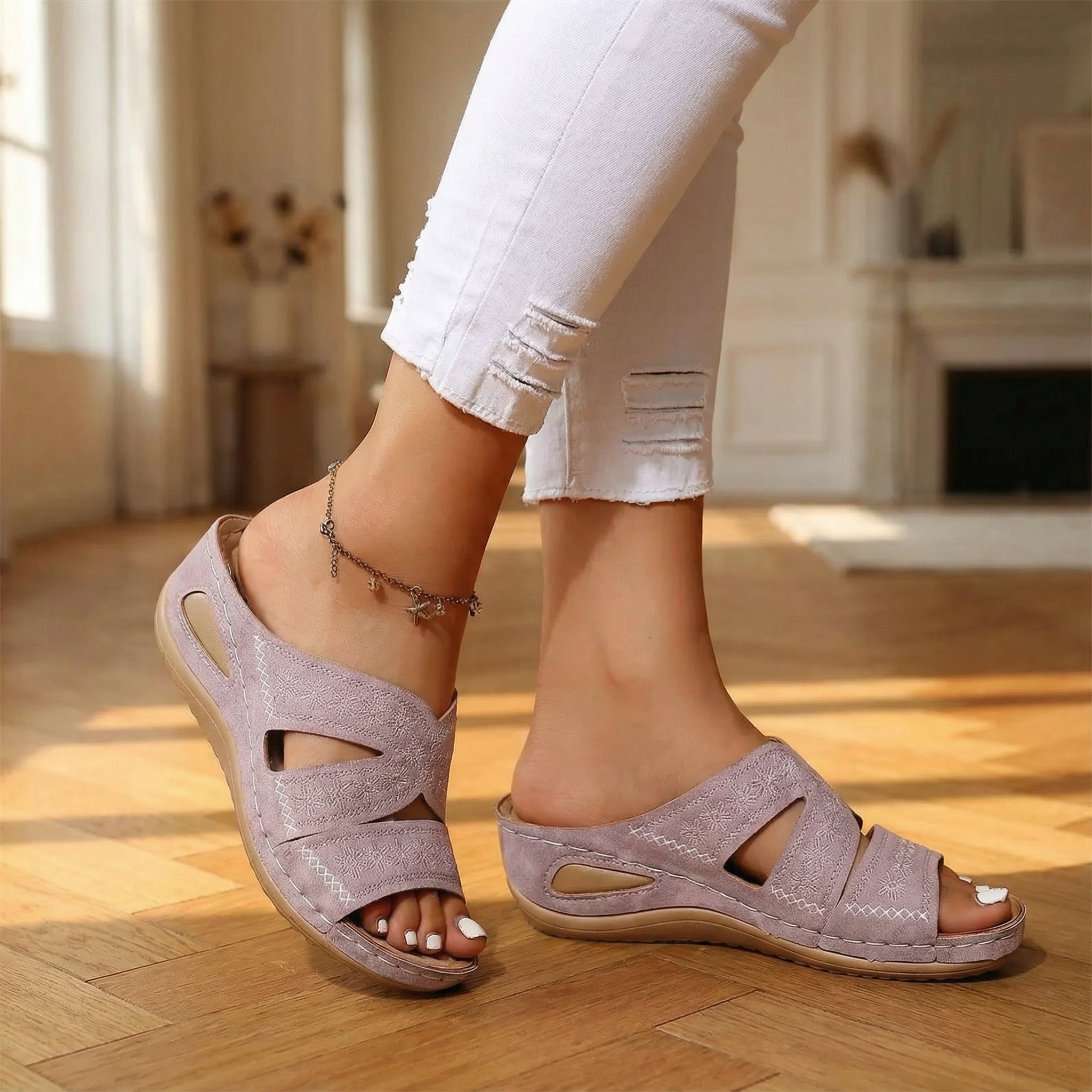 Our footwear are crafted with durable, high-quality materials designed to withstand everyday wear. For easy cleaning, simply wipe the uppers with a soft damp cloth and let them air dry naturally. This quick care routine helps maintain their comfort and style for years to come.