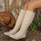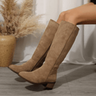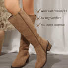 Crafted with a generous calf circumference, these elegant knee-high boots provide the perfect blend of sophisticated style and all-day comfort. The soft, supple suede-like material stretches gently to accommodate your shape while maintaining a sleek, flattering silhouette.