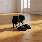 Elevate your style with Women's High-Heeled Sandals - Stiletto Heel - Open Toe - Stretch Knit Anklet. These chic, slip-on sandals feature a sleek stiletto heel, open-toe design, and a comfortable stretch knit ankle cuff for a secure and stylish fit. Perfect for formal or semi-formal occasions.